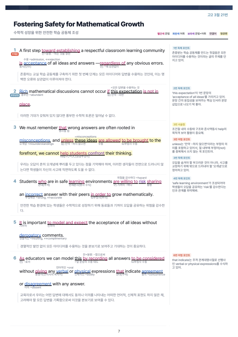 문법, 어휘, 구조, 출제 포인트를 자동으로 파악